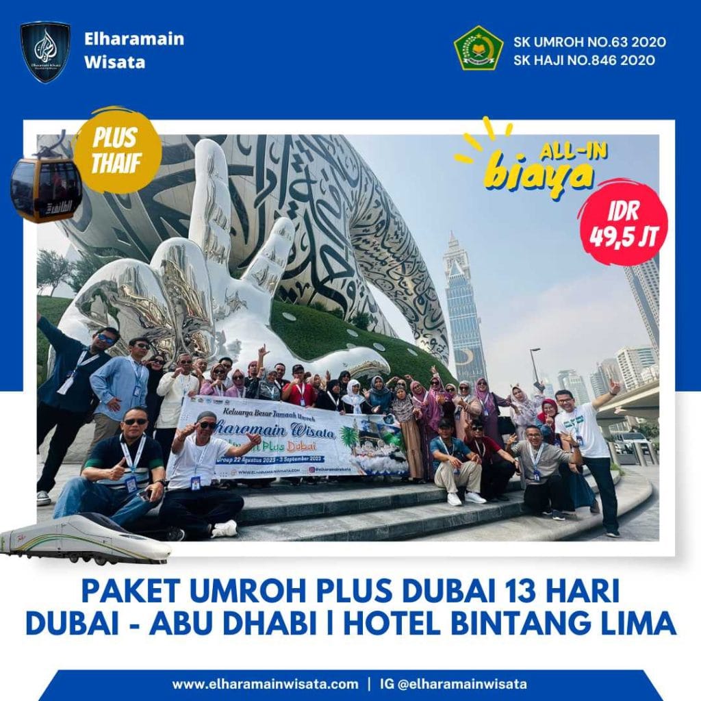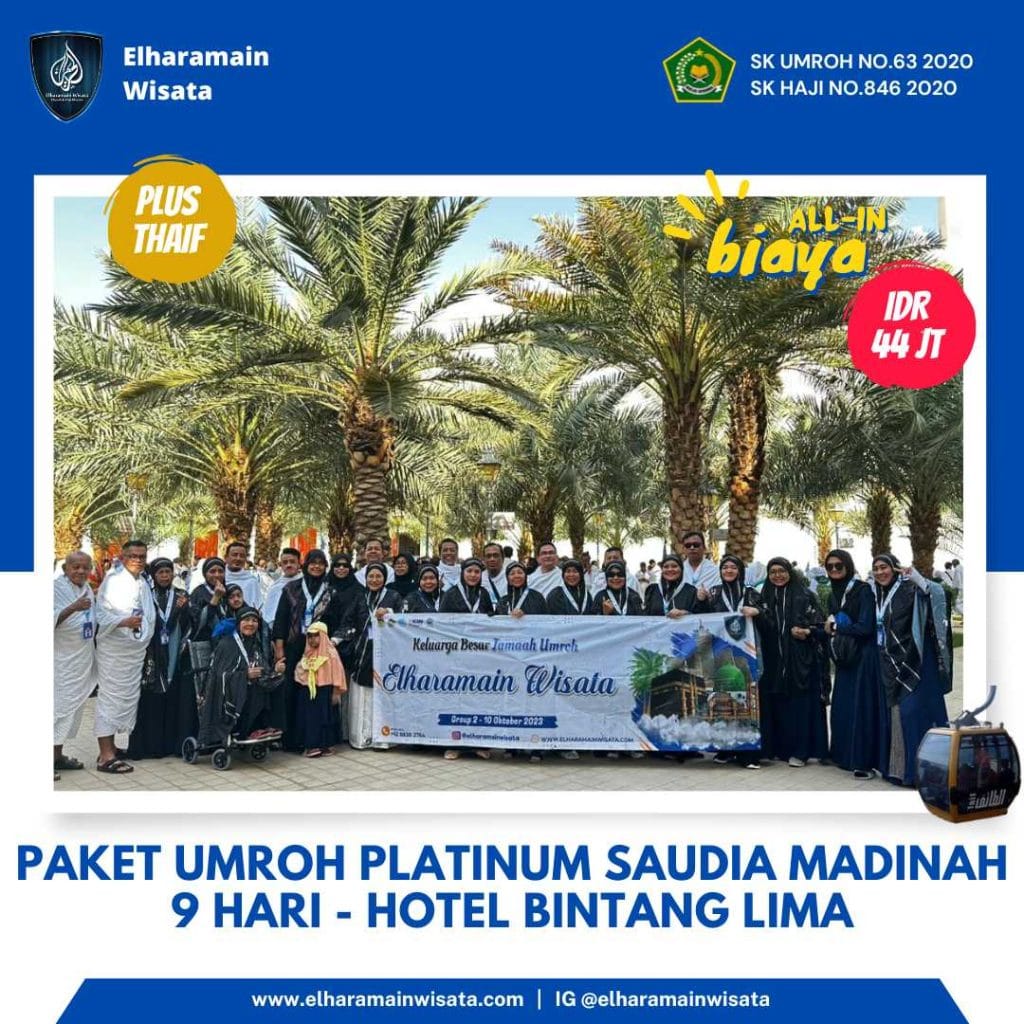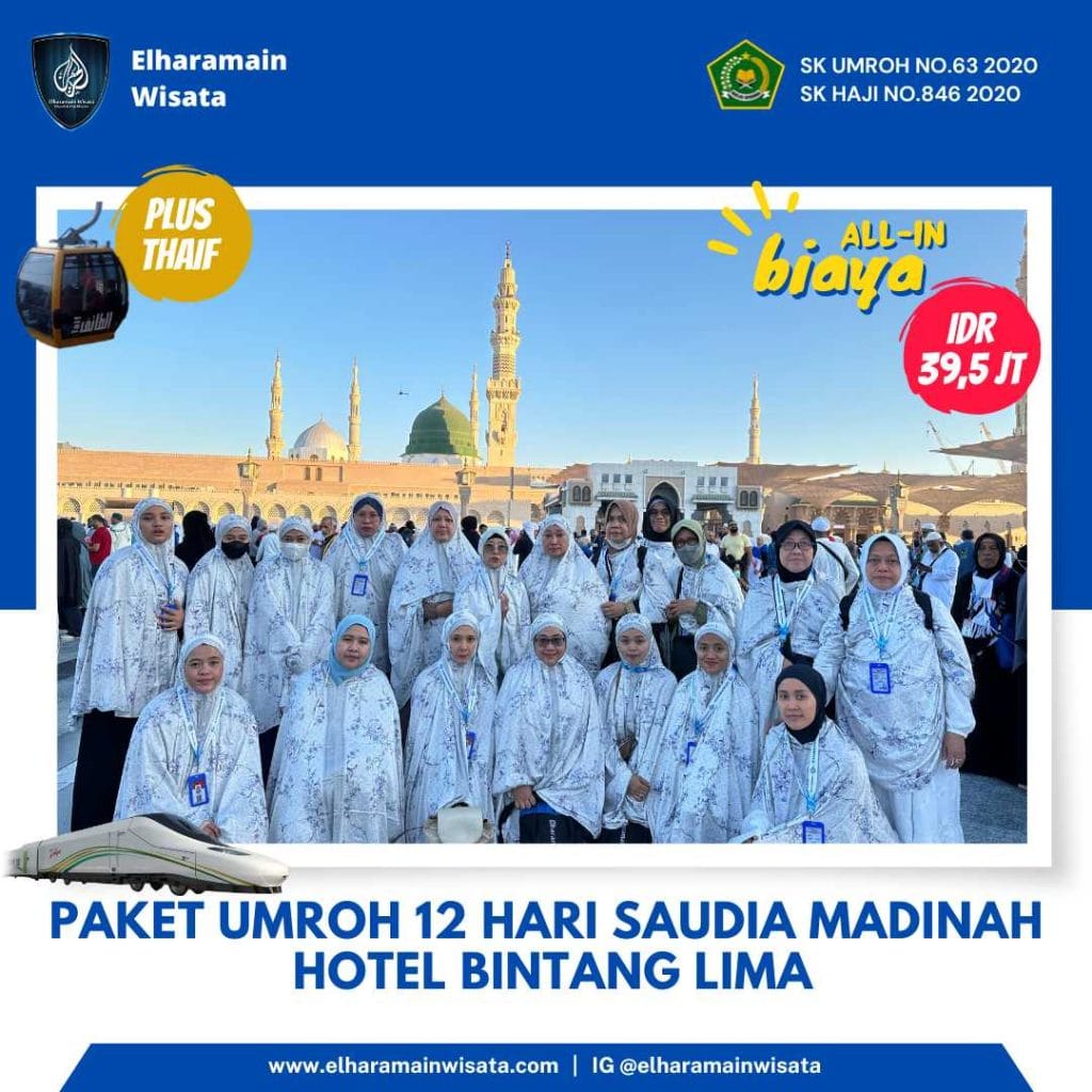 Diposting di ANGGUN MELLYSATrustindex memverifikasi bahwa sumber asli ulasan adalah Google. MasyaAllah Tabarakallah, Umroh bersama Elharamain sangat mengesankan, Ustadnya ramah dan helpful, Ustad mutawifnya sangat bertanggung jawab dan profesional. Makanan pun berlimpah, ibadah khusuk Alhamdulillah sangat mengesankan. Semoga bisa umroh dan haji di Elharamain lagi bersama keluarga besar, aamiinDiposting di Arkaan Rasyad UsmanTrustindex memverifikasi bahwa sumber asli ulasan adalah Google. Amazing experience. Very grateful. AlhamdulillahDiposting di Helin SuherlinaTrustindex memverifikasi bahwa sumber asli ulasan adalah Google. Elharamain bagus, dan mengesankan, for next kita bisa pakai elharamainDiposting di Bara al azisTrustindex memverifikasi bahwa sumber asli ulasan adalah Google. Alhamdulillah, dengan harga yang di bayar, fasilitas pelayanan makanan dirasa lebih dari yang di bayarkan..Diposting di Irfan MarpaungTrustindex memverifikasi bahwa sumber asli ulasan adalah Google. Secara keseluruhan, saya sangat puas dengan pelayanan Elharamain Wisata. Profesionalisme, keramahan, dan perhatian terhadap kenyamanan jamaah benar-benar terasa. InsyaAllah, jika diberi kesempatan lagi, saya tidak ragu untuk memilih Elharamain Wisata sebagai penyelenggara perjalanan ibadah saya berikutnya. Semoga semakin banyak orang yang bisa merasakan pengalaman luar biasa ini. Amin YRA. Makanan yang disediakan pun sangat sesuai dengan selera kami, dan sering di kasih surprise makanan. Sehingga tidak ada kendala dalam hal makanan dan dapat menjaga stamina untuk beribadah. Selain itu, aplikasi yang disediakan oleh Elharamain juga sangat membantu dalam mengingat jadwal kegiatan dan doa-doa penting selama umroh.Diposting di DindaTrustindex memverifikasi bahwa sumber asli ulasan adalah Google. Alhamdulillah diberi kesempatan untuk umroh Ramadhan bareng El Haramain.. Terimakasih juga untuk Ustadz Didi dan Ustadz Muhaimin atas bimbingan nya selama ibadah umroh ini, masyaAllah pelayanan dan makanan nya sudah seperti surga dunia, semoga bisa umroh dengan El Haramain lagi di waktu lain.. Aamiin..Diposting di Milka FarinaTrustindex memverifikasi bahwa sumber asli ulasan adalah Google. Alhamdullilah...kami baru melaksanakan umroh plus Thaif dengan Elharamain Wisata...ini perjalanan umroh yg mendadak krn kami baru mendaftar 10 hari sebelum tanggal keberangkatan, alhamdullikah bu Nida sangat membantu proses pendaftaran, pengurusan dokumen yg akhiranya kami bisa berangkat. Perjalanan lancar dengan Saudi Airlines, dan juga hotel yang nyaman di hotel Concorde (Madinah) dan hotel Anjum (Mekkah), bimbingan ibadah dari ustad Didi dan support dari ustad Imin menjadikan perjalanan ibadah umroh ini menyenangkan. Wisata Madinah, kota Mekkah juga ke Thaif menambah pengalaman yg tak terlupakan. Plus bingkisan dan makanan yang tak henti..menambah semangat perjalanan ini.. he..he.. Terimakasih Elharamain Wisata...khususon ustad Didi Wibawa, ustad Imin dan bu Nida..jazakumulloh khairan katsiro... InsyaaAllah jika ada rejeki lagi..wisata dengan Elharamain Wisata menjadi pilihan kami.Diposting di DarmaTrustindex memverifikasi bahwa sumber asli ulasan adalah Google. Subject: Umroh Bersama Elharamain Wisata Alhamdulillah segala puji bagi Allah atas semua nikamt, taufik serta hidayah nya sehingga kami berkesempatan memenuhi undanganNya melakukan ibadah umroh bersama Elharamain Wisata. Insya Allah semua program yang dijalankan bernilai ibadah dan mendapatkan umroh yang mabrur bagi semua jamaah. Baru kenal Elharamain Wisata hy bbrapa hari sebelum kberangkatan, itu juga kami mengisi slot yang kosong dikarenakan ada jamaah yg cancel last minute. Jadi semua tiba2 dan serba cepat krn pendaftaran visa dsb. Tadinya pesimis bs berangkat krn waktu yang sangat mepet, tapi Alhamdulillah semua proses lancar, sangat professional dan tidak ada kendala sama sekali walaupun semua proses kami lakukan hanya melalu whatsapp sahaja. Proses umroh dengan Elharamain Wisata sangat professional dan friendly. Program nya sangat jelas, tepat sasaran dan sesuai. Jangan kawatir soal akomodasi sejak berankat smp kembali, this is the best. Jamaah jg selalu didampingi oleh ustad Didi sejak keberangkatan dan ditambah ustad Muhai setiba kami di Madinah. Penjelasan dari Ust Didi untuk setiap program sangat bagus, sesuai sunnah dan mudah dipahami. Sekali lagi terima kasih kepada ust Didi Wibawa dan ust Muhay. Insya Allah kembali ke tanah air dengan membawa umroh yang mabrur. Terima kasih Elharamain Wisata sudah mewujudkan serta memfasilitasi kami memenuhi undanga Allah swt. Sukses selalu untuk semua team Elharamain yang terlibat dari A-Z dan insya Allah dimudahkan semua urusan dunia dan akhirat nya. Tetaplah melayani tamu2 Allah dengan sepenuh hati krn pekerjaan tersebut sungguh mulia. Wassalam Muhamma DarmawisudaDiposting di Pudjijanto familyTrustindex memverifikasi bahwa sumber asli ulasan adalah Google. Alhamdulillah travel elharamain luar biasa...kenyang luar biasa dngn konsumsi extra...dngn ustadz leader yg luar biasa...trm kasih ustadz Didi dan ustadz Muhaimin yg slalu dampingi kita dr awal ibadah di Madinah sampai dengan ibadah umroh di Mekkah...smoga ibadah umroh kita Allah berikan pahala umroh mabrur...Alhamdulillah Allah mudahkan tanpa ada kesulitan Insyaa Allah dimampukan kembali oleh Allah datang ke baitullah bersama travel elharamain dan berjumpa dngn ustadz Didi dan ustadz Muhaimin...barokallahu fikumDiposting di Lucky Joko TriTrustindex memverifikasi bahwa sumber asli ulasan adalah Google. Alhamdulillah...Elharamain luar biasa..❤️ Pembimbing ramah dan kooperatif @ ustadz didi dan ustad muhei..ditanya ataupun konsul apa saja siap membantu.. Hak tubuh untuk makan pun sangat diperhatikan...Terima kasih Elharamain Wisata n crew...Semoga makin amanah dan selalu ada perbaikan disetiap perjalanan mendampingi umat..🙏🙏 Sukses selaluMuat lebih banyakMenampilkan ulasan terbaru kamiDiverifikasi oleh TrustindexLencana verifikasi Trustindex adalah Simbol Universal Keper